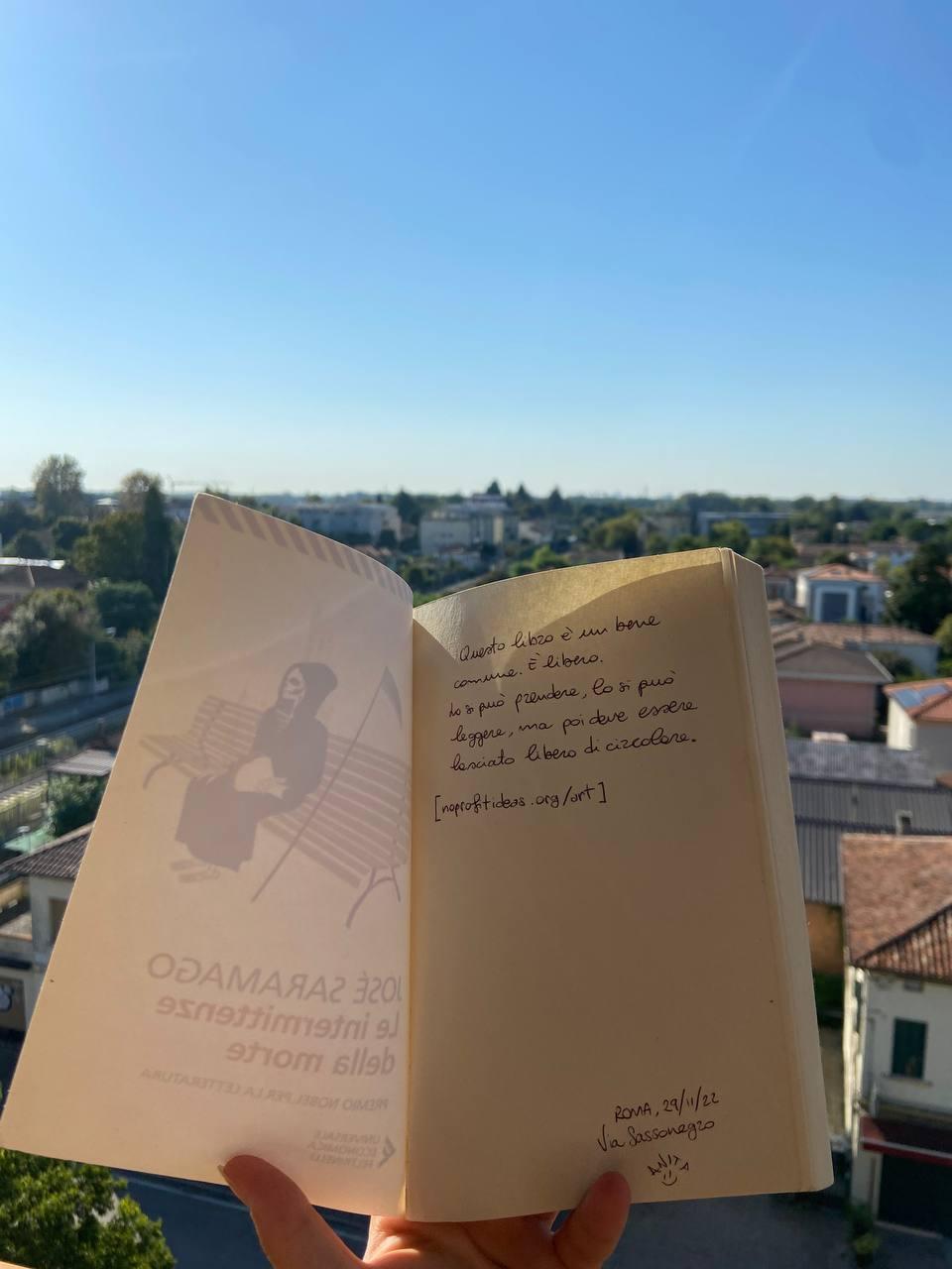 Now, before the drop, I write on the first page something to the effect of “This book is a free common good. It can be read, but not bought or sold. And then it always has to be set free again, to circulate”.